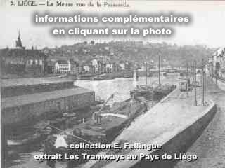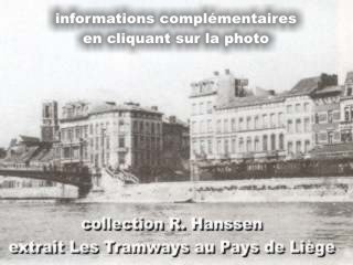 Au début des années 1890, naît le projet d'une ligne vicinale, la première à relier le centre de Liège à la banlieue. Bien sûr, il existait depuis vingt ans déjà différentes sociétés de transport en commun qui desservaient la ville et la banlieue, mais la SNCV n'avait toujours pas son "droit d'entrer" dans le centre. Il faudra attendre 1898 pour voir partir le premier tram à vapeur SNCV du Quai des Pêcheurs (actuel Quai Van Beneden) au pied de la Passerelle qui relie les deux rives de la Meuse. |