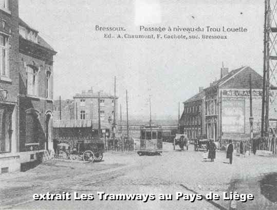 Sur la commune de Bressoux, il traverse la ligne de chemin de fer Liège-Maastricht. Dans un premier temps, le tram franchit un passage à niveau. Plus tard, on construira un viaduc surplombant les voies du "grand chemin de fer". C'est près de la gare que le dépôt est érigé. |