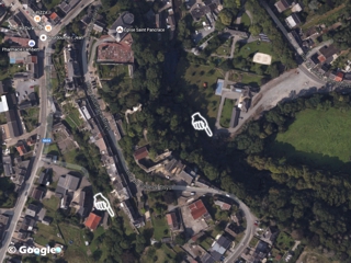 Sur ce cliché Google, les deux flèches indiquent les deux pertuis du tunnel. |