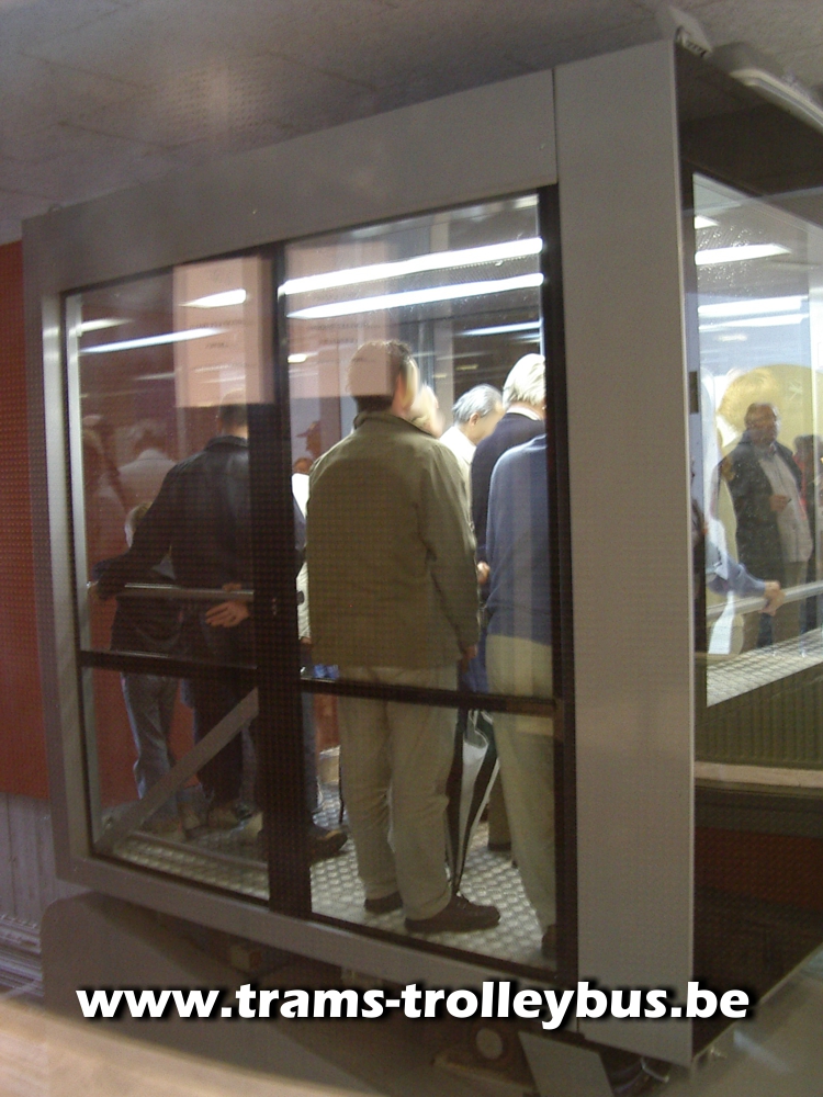 La cabine entre dans le bâtiment. |
