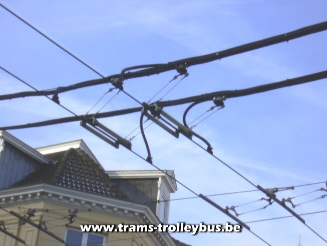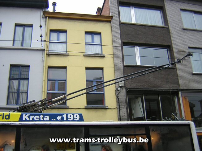 De trolleystangen van de 08. Dampoortstraat