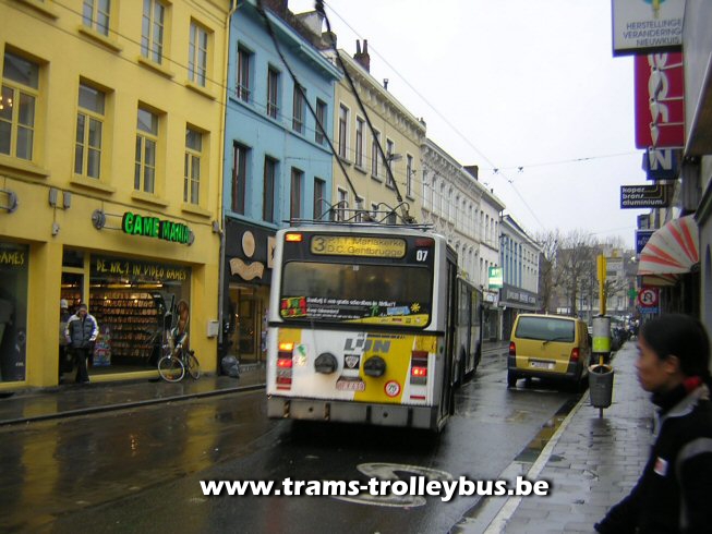 07 verlaat de halte in de Dampoortstraat. Hij rijdt richting Mariakerke. 20-3-04 |