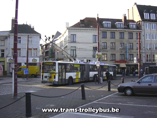 De kruising van tram 1 en de trolleybus, Cataloniestraat. 6-3-04 |