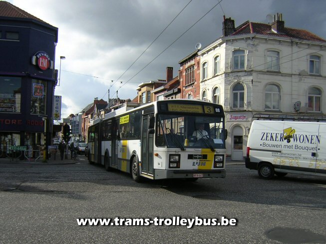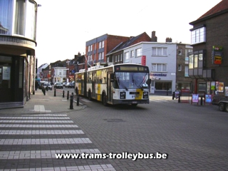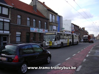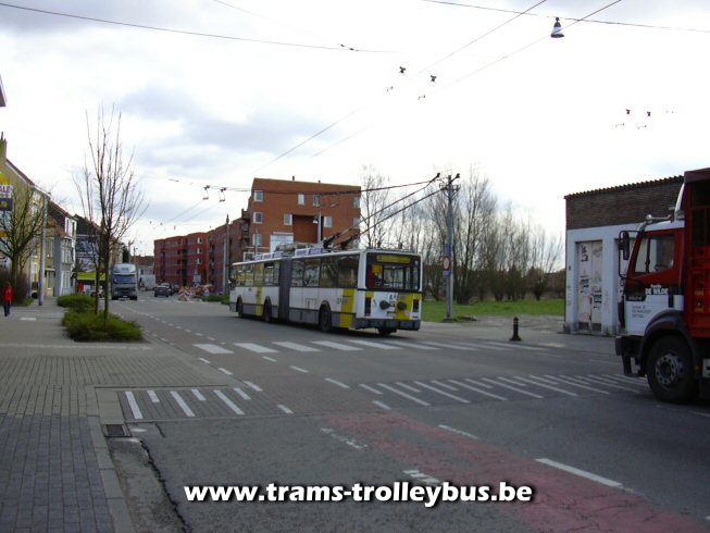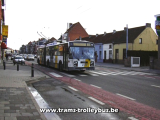 We zijn de Rooigemlaan over. De 14 in volle actie op de Brugse steenweg. De snelheid van de trolleybus overschrijdt zelden de 50km/h en meestal zelfs de 35km/h 25-2-04 |