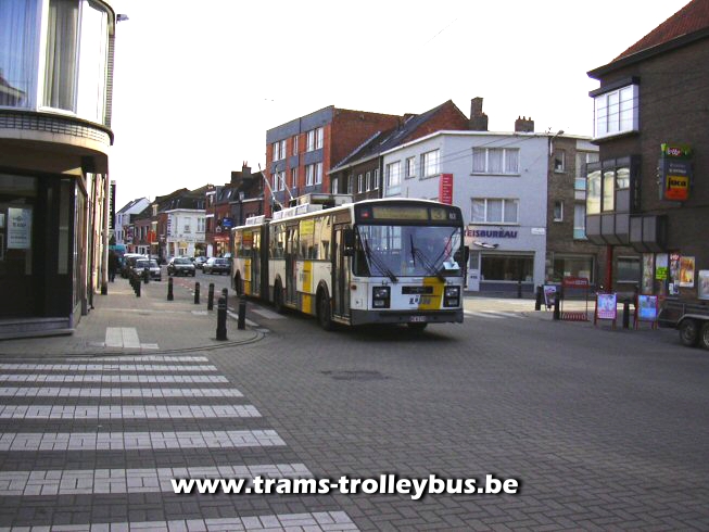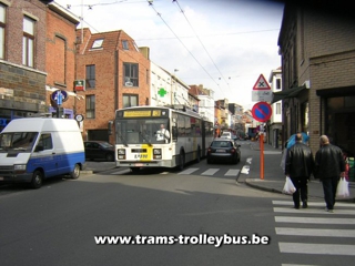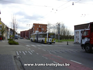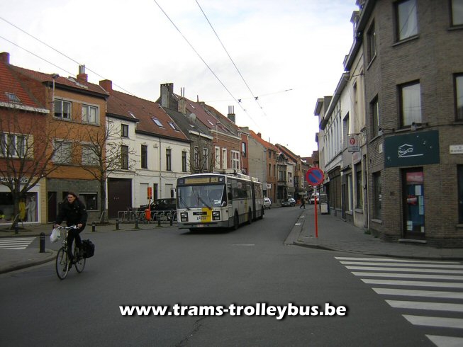 16 op de Brugse stenweg, op de achtergrond het Claeysplein, vroegere terminus van de tram 3, afgeschaft in 1969. De trolleybus rijdt naar Gentbrugge 25-2-04 |