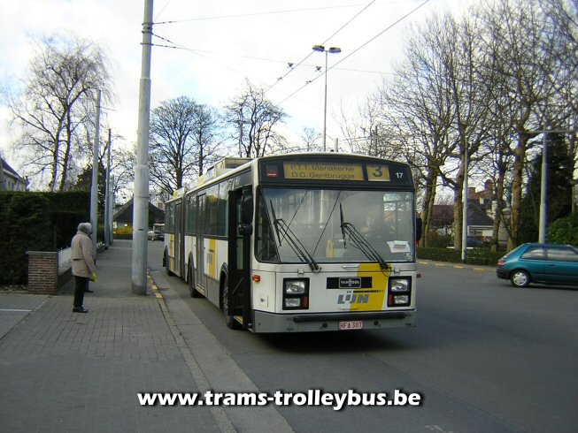 Aan de Meersemdries vervoegt de 17 weer lijn 3. 21-3-04 |