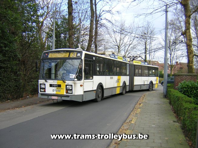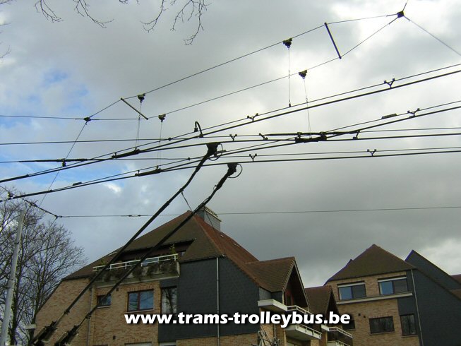 De trolleystangen glijden op de draden van lijn 3. 21-3-04 |
