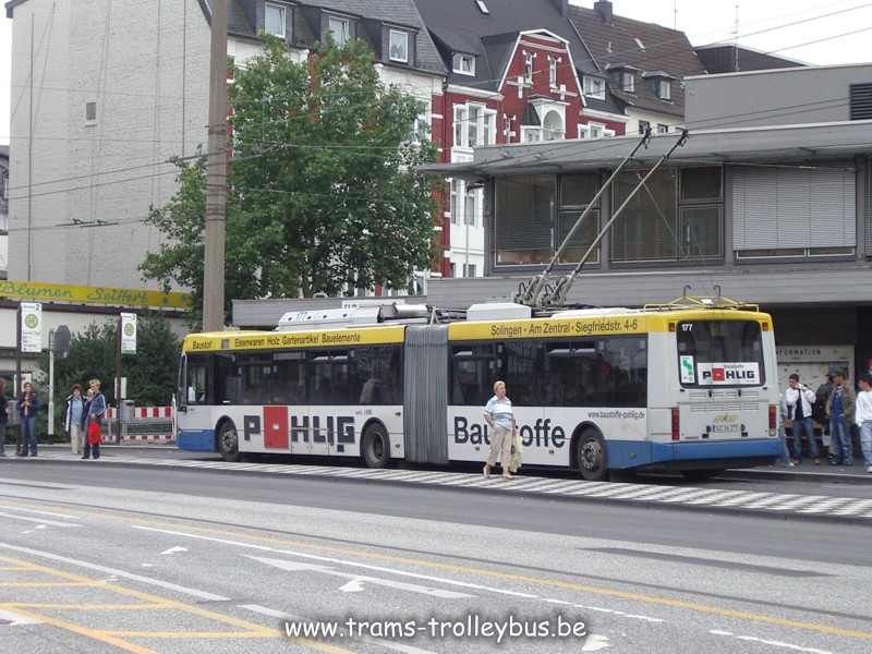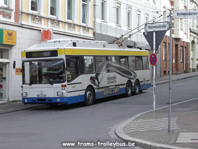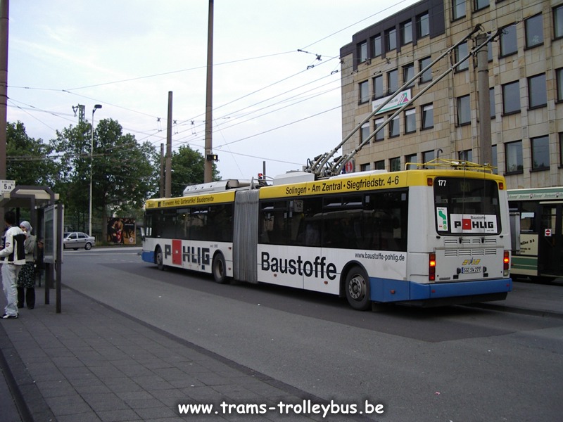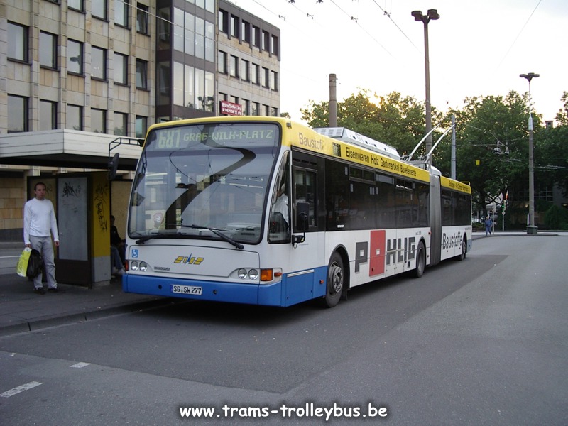 Solingen est située à 37 kilomètres au nord-est de Cologne. Elle compte plus ou moins 163.000 habitants. Vers 1952, le réseau de trams vieillissant est converti au trolleybus. Le longueur actuelle du réseau est de 70 kilomètres. Il est composé de 6 lignes: 681 : Hästen – Ohligs