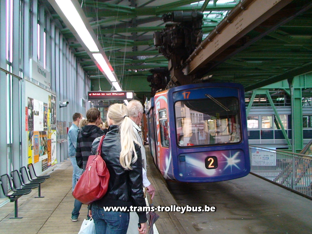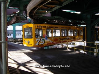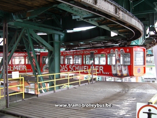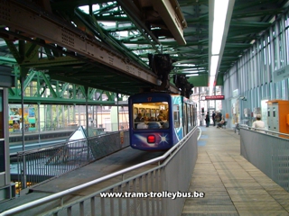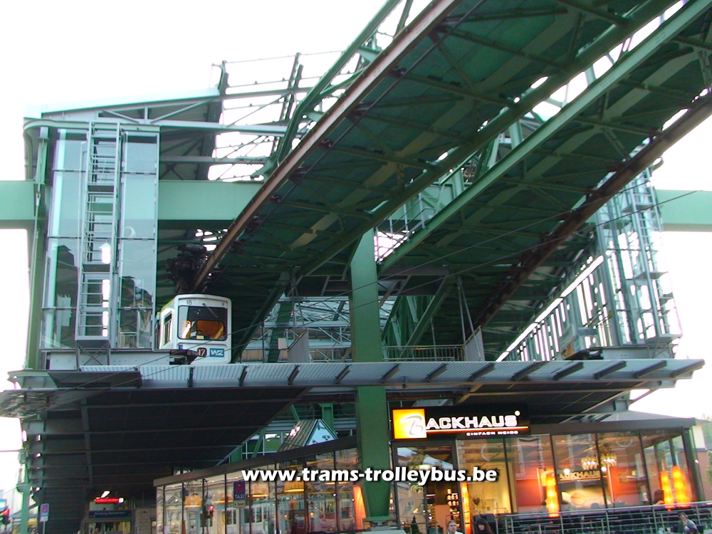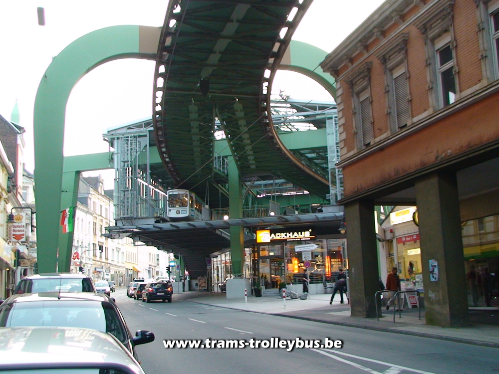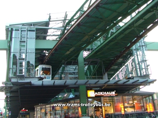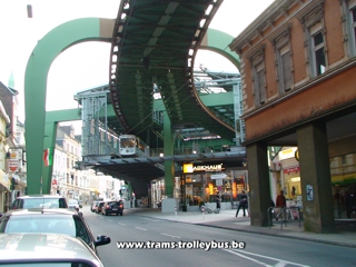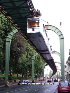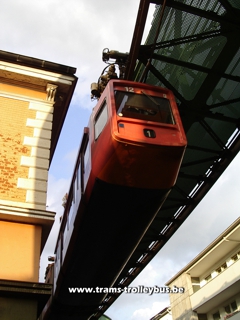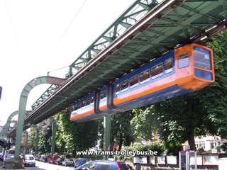 Située au nord-est de Cologne (Ruhr), cette ville de 370.000 habitants possède une ligne de métro tout à fait unique. Il s'agit d'un système de rames suspendues à un rail. Imaginé dès 1887, les travaux du Schwebebahn débutèrent en 1898. Une première section de la ligne fut ouverte aux voyageurs dès 1901. Le reste de la ligne fut terminé en 1903. La construction de ce métro suspendu nécessita l'utilisation de 19.200 tonnes d'acier. Une courte vidéo est disponible. |