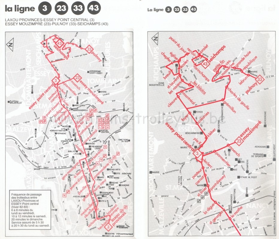 Ensuite, deux autres itinéraires seront encore convertis: en décembre 1982 entre CHU & Beauregard (ligne 4- 21km) et en septembre 1983 entre Laxou & Essey (ligne 3-14 km) avec les extensions vers Seichamps & Pulnoy exploitées en mode thermique. |