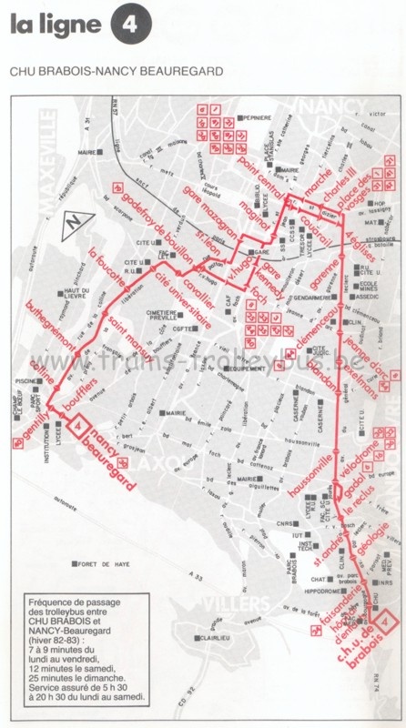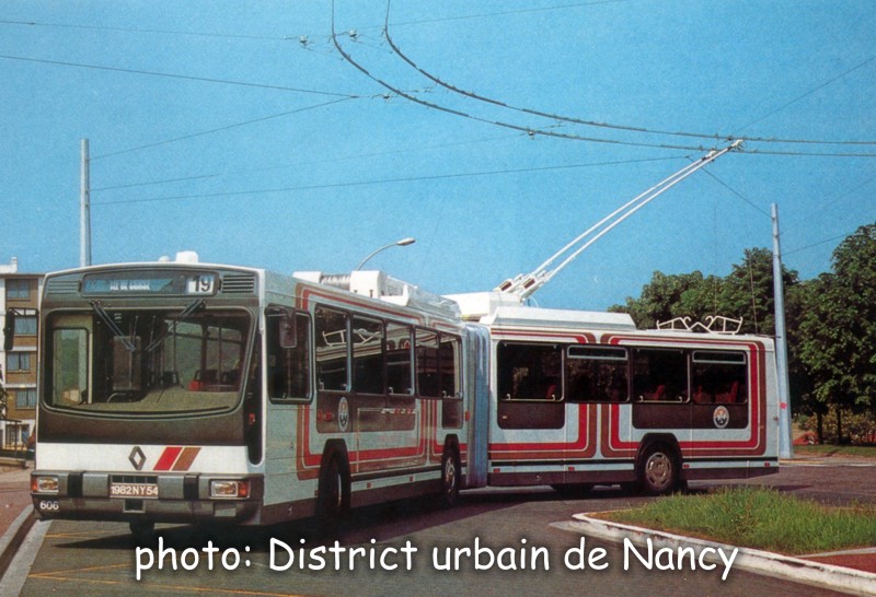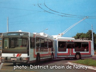 En mars 1980, la grande agglomération de Nancy planche sur un nouveau plan global de déplacement. Trois grands axes sont dégagés: créations de voies nouvelles, régulation du trafic par ordinateur et développement du transport collectif. Dans cette optique, la décision est prise de convertir les principales lignes de bus en trolleybus. Le trolleybus articulé bi-mode sera préféré au tram (Nancy connaîtra les trams électriques de 1898 à 1958) en raison de ses coûts et délais d'exécution plus réduits et aussi pour sa facilité d'insertion en voirie et ses aptitudes supérieures en rampes. Le projet sera aidé financièrement par le Ministère des Transports. Deux ans s' écouleront entre la prise de décision et la mise en service de la première ligne. |