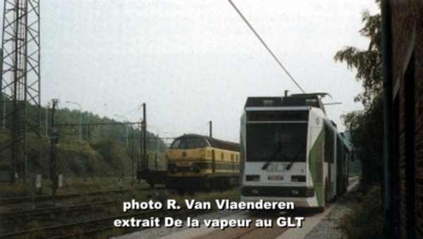 Pour certains trajets, le GLT poursuivait sa route au-delà de Rochefort. Il continuait son parcours en mode diesel non guidé traversant Han-sur-Lesse et continuant jusquà la station de télécommunications Belgacom de Lessive. |